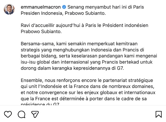 Presiden Perancis Emmanuel Macron gunakan bahasa Indonesia di Instagramnya,... bahasa Indonesia semakin diakui dunia, bahasa Melayu Malaysia kemanaaa ...???